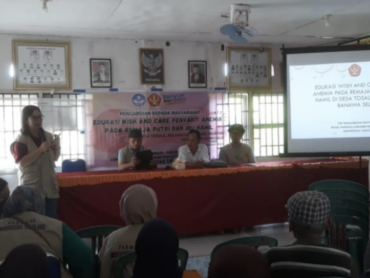 Tim dosen dari Program Studi Farmasi Universitas Tadulako (Ibu Yuliet, Ibu Khildah Khaerati, Bapak Jamaluddin, Bapak Agustinus Widodo) telah melaksanakan kegiatan pengabdian kepada masyarakat pada 10 Juni 2023 dengan tema “Edukasi Wish and Care Penyakit Anemia pada Remaja Putri dan Ibu Hamil di Desa Tosale, Kecamatan Banawa Selatan”. Kegiatan ini bertujuan untuk memberikan pengetahuan mengenai pencegahan dan penanganan anemia melalui edukasi yang disesuaikan dengan kebutuhan kelompok sasaran. Para peserta, terdiri dari remaja putri dan ibu hamil, antusias mengikuti penyuluhan mengenai pentingnya pola makan sehat dan pemahaman tentang gejala anemia. Kegiatan ini diharapkan dapat meningkatkan kesadaran masyarakat tentang pentingnya kesehatan gizi untuk mencegah anemia. |