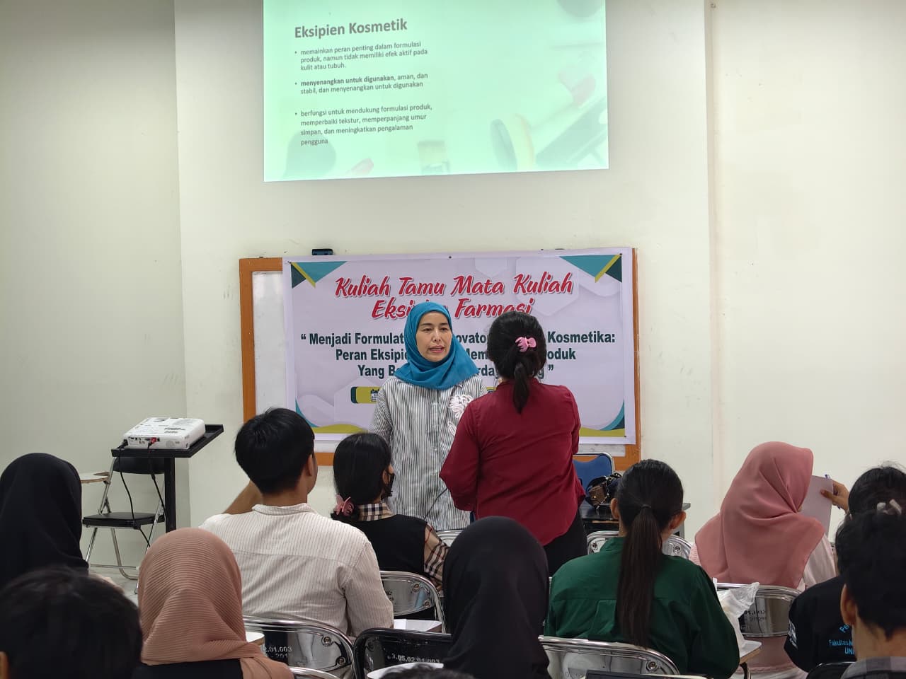Kuliah tamu ini mengusung tema “Menjadi Formulator dan Inovator di Dunia Kosmetika: Peran Eksipien dalam Membangun Produk yang Bernilai dan Berdaya Saing”. Melalui kuliah ini, narasumber berbagi pengalaman praktis dan pengetahuan mendalam mengenai bagaimana seorang formulator kosmetik berperan penting dalam menciptakan produk inovatif yang tidak hanya aman dan efektif, tetapi juga memiliki daya saing tinggi di pasar.
