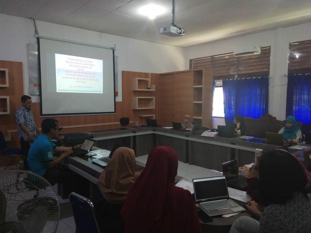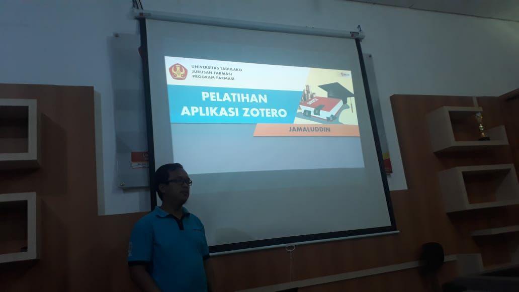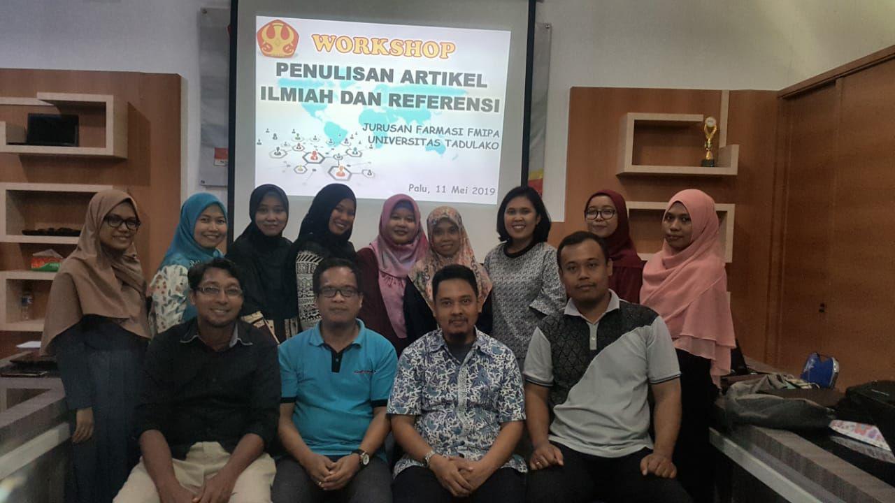 Jurusan Farmasi FMIPA Universitas Tadulako pada Sabtu, 11 Mei 2019, menyelenggarakan Pelatihan Penulisan Artikel Ilmiah dan Referensi. Pelatihan Penulisan Artikel Ilmiah oleh bapak M. Sulaiman Zubair, S.Si., M.Si., Ph.D., Apt. dimaksudkan sebagai upaya meningkatkan kemampuan para dosen/peneliti dalam menulis artikel ilmiah yang memenuhi standar, serta dalam rangka memotivasi menulis artikel ilmiah baik tingkat nasional maupun internasional. Pelatihan Penulisan Referensi oleh bapak Jamaluddin, S.Farm., M.Si. dimaksudkan memberikan pengetahuan tentang cara manajemen referensi dan teknik sinkronisasinya, serta teknik melakukan citation karya ilmiah yang benar.
