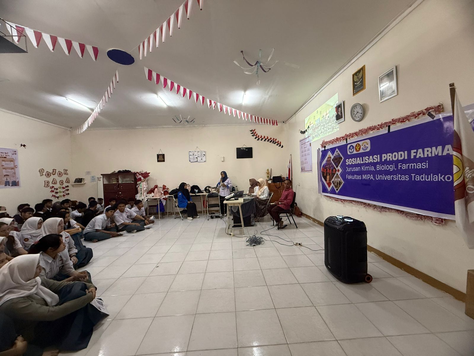 Sosialisasi bertujuan memberikan pemahaman lebih dekat mengenai Program Studi Farmasi FMIPA UNTAD, sekaligus membuka wawasan siswa tentang prospek dan peluang di bidang kefarmasian.