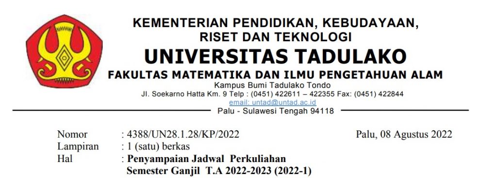 Jadwal Mengajar & SK Perkuliahan Semester Ganjil 2022/2023 (20221) FMIPA